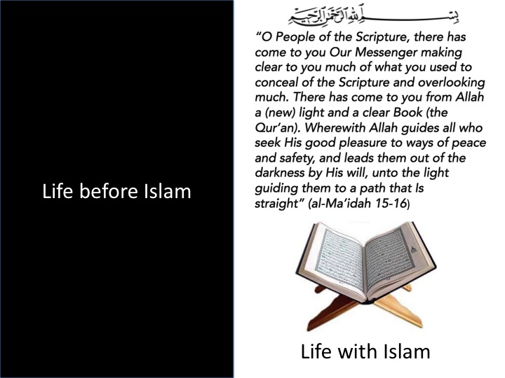 Life before Islam. A quick inspiration, insha’Allah On June 18, 2014 By Vina McDermott Share this with friends and family Click to share on X (Opens in new window) X Click to share on Facebook (Opens in new window) Facebook Click to share on Pinterest (Opens in new window) Pinterest More Click to email a link to a friend (Opens in new window) Email Like Loading... Related